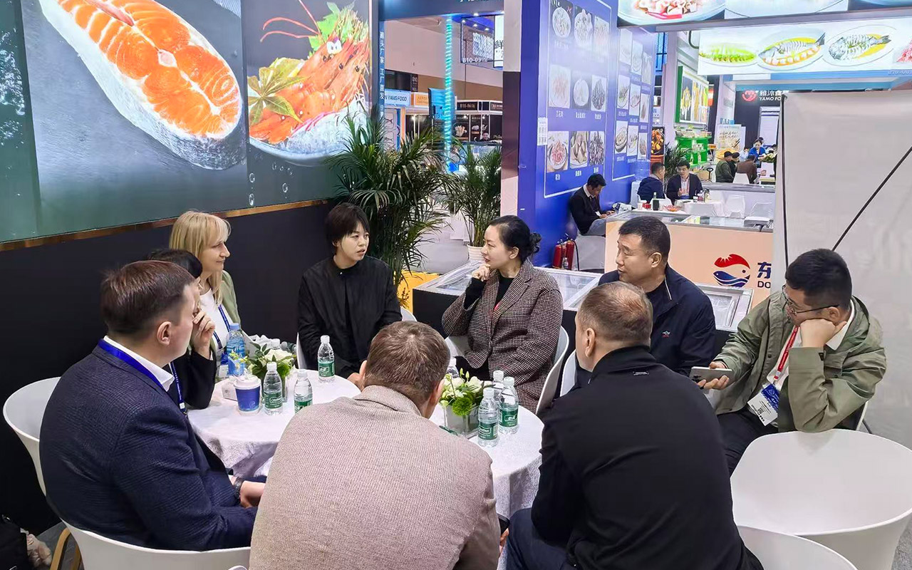 二十届四中全会指出,要“建设强大国内市场,加快构建新发展格局”。立足于探索“食品供应链至简之道”的苏豪冷链,近期进口海鲜水产业务高歌猛进,10月份海鲜进口大幅增长,帝王蟹业务在国内市场声誉斐然。在第28届青岛渔博会上,苏豪冷链团队精心打造的水产展示矩阵亮点十足:经典高端品类中,俄罗斯甜虾、加拿大牡丹虾、新西兰鳌虾、加拿大雪蟹腿等产品整齐陈列,凭借稳定的品质与稀缺性,迅速吸引海内外客商目光;活鲜展示区更成为现场“人气打卡点”——专业水族箱内,俄罗斯活帝王蟹与加拿大波士顿龙虾活力满满,工作人员同步讲解活鲜捕捞、冷链运输全流程,让观众直观感受事业部在活鲜供应链领域的硬实力,不少客商当场围绕产品采购细节展开咨询洽谈。苏豪冷链参展团队以高效服务对接全球客户,针对批发采购、餐饮直供、电商平台等不同合作场景,提供从产品选型到冷链配送的一体化解决方案,与50余家海内外客户达成初步合作共识。