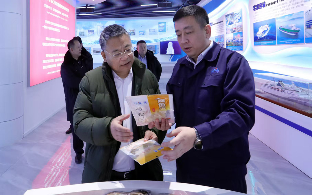 在辽渔集团,季欣一行登上辽鲁航线主要客滚运输船“中华复兴”考察,先后参观了辽渔国际水产品市场、辽渔产业展馆、帝王蟹暂养池及海上民兵爱国主义教育基地。在与辽渔集团副书记王利民、副总经理于海游的座谈中,双方就水产品运贸合作、批发市场南北协同、远洋捕捞加工和辽渔产品在江苏地区推广进行深入交流,寻找合作契机。双方共同表示,此次拜访是双方增加了解、开启合作的重要契机,辽渔集团也将于近期回访,加大交流力度,助力合作发展。