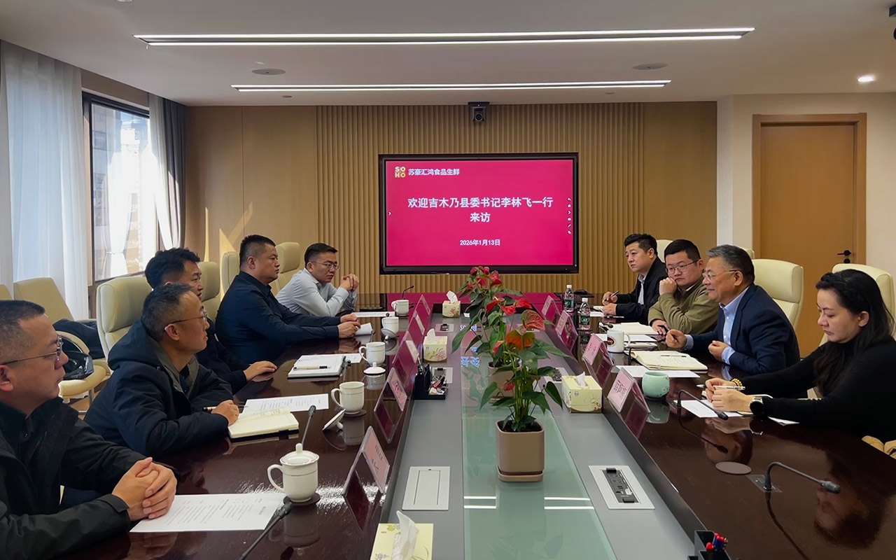 1月13日下午,新疆阿勒泰地区吉木乃县委书记李林飞一行到访苏豪汇鸿食品生鲜事业部。事业部党委书记、总监季欣及苏豪冷链相关业务骨干热情接待。双方就进一步深化产业合作、拓展合作领域等内容开展座谈交流。